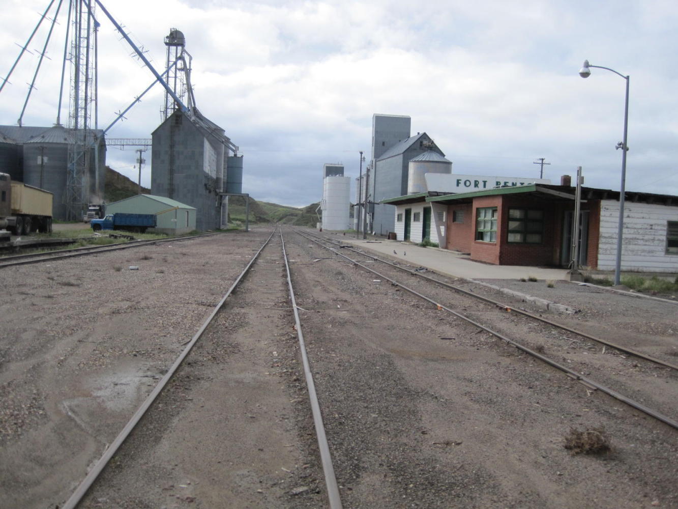 We could not leave Fort Benton without another visit to the Wake Cup, where after one day we are already well known. The quality of the cooking is excellent and we learned that the cook is the Mom of the young woman that started the project. Taking one excellent bran muffin for the road, we cycled back through all the now familiar historical placards and up the embankment toward the railway station, now abandoned.