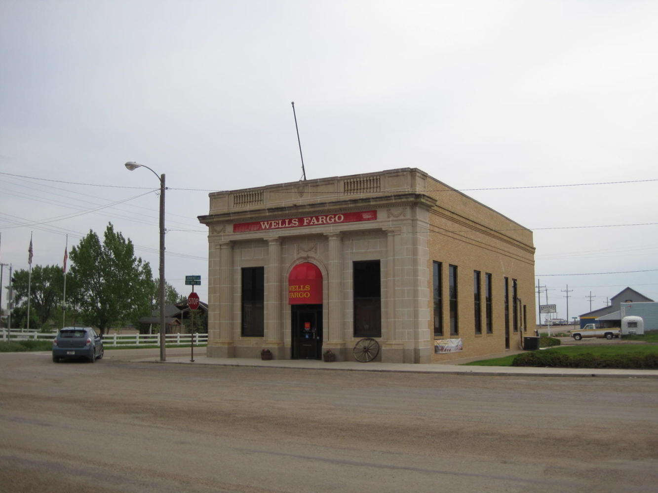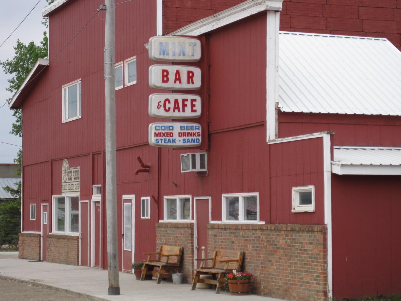 Big Sandy is a study in contrasts. There is the immaculate Wells Fargo building mentioned yesterday, and there is the Bear Paw Cafe, which also would be at home in the finest large city. Then there is the contrasting semi-dirt main street, the three sleazy bars, and the not too much of anything else (except the Museum, which we missed).