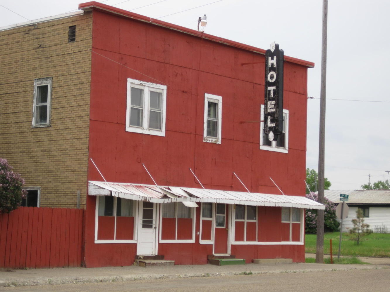 Following up on the party thinking, we head out to tour the town's historic buildings and also to find a steakhouse. The first passerby recommends a place that turns out to be a "Lounge" and has a battered entrance with no window. We just can not wrap our heads around this apparent cultural institution of calling a bar a restaurant.