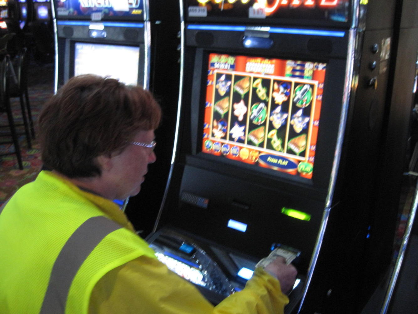 Imagine the scene then as the two fluorescent and lycra clad grampies enter the subdued light and neon glowing environment of hundreds of gambling machines. They stand in front of the first one and puzzle over it. "How do you make it go?" "What are all these numbers and stuff on the screen?" "Where does it take your money?".