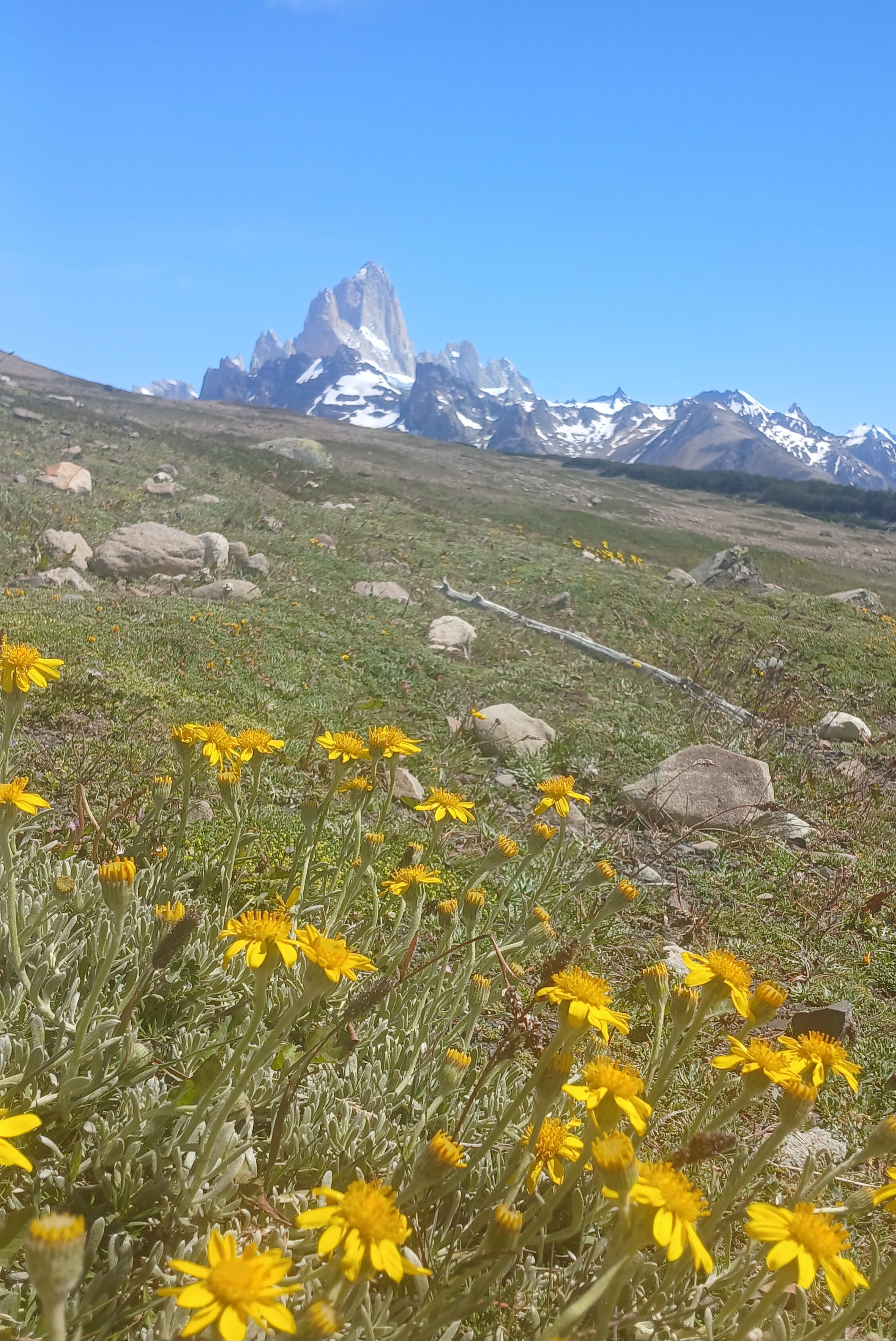 I organised everything in my rucksack before going to sleep so all I had to do this morning is get up and go, leaving the campsite at 05.30; a comfortable amount of time to walk across town over the Fitzroy river bridge and pass the parkrangers house and checkpoint before 06. A few strides behind were a young couple most likely with the same motive of entering the park without paying 25,000 pesos (£24). So too were a group of 7 young mixed nationality English speakers from North America, England and India at the top of the intial steep ascent who stood around taking in the vista of Mount Fitzroy while discussing the park entrance fees and the fact they were out early to avoid paying as I boiled water for breakfast.