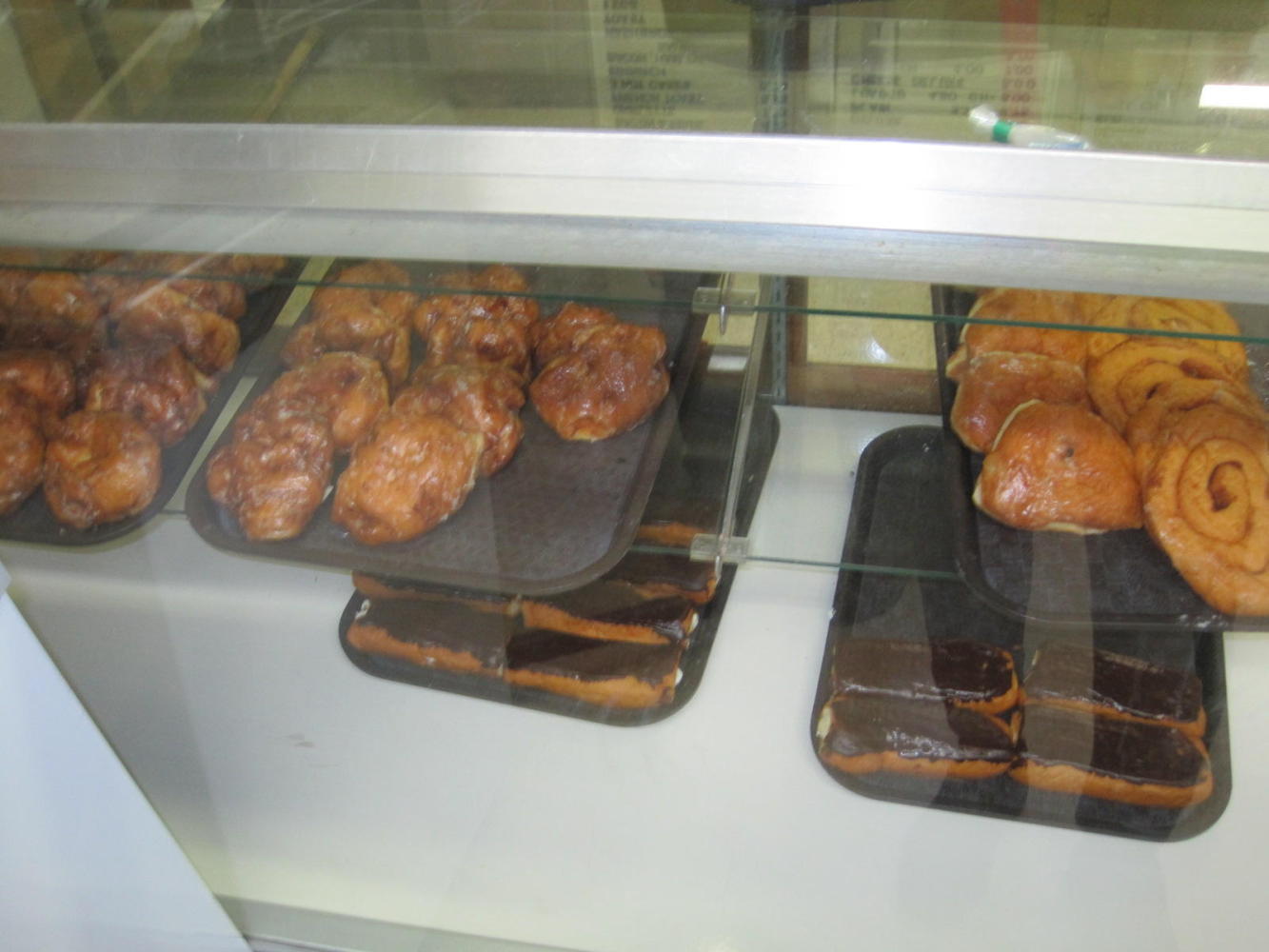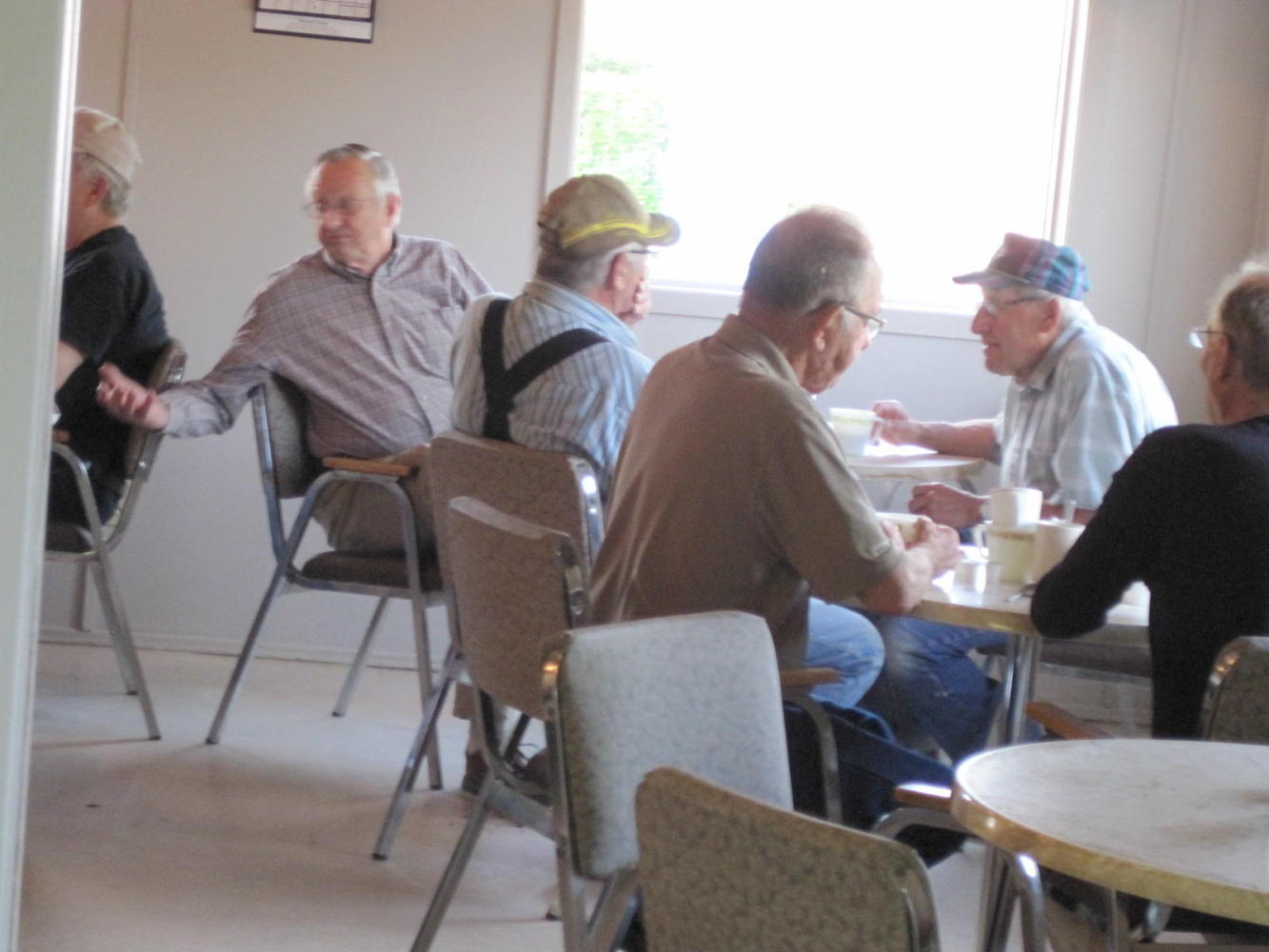 We moved on to the local cafe, where the scene has become so familiar: Non fancy surroundings, 8-12 farmers at one table, possibly some of their wives at another table. Bacon, eggs, toast on offer. This time the cafe was also a "bakery", which in rural Canada means donuts and too fluffy cinnamon buns. We settled on muffins, which were not half bad.