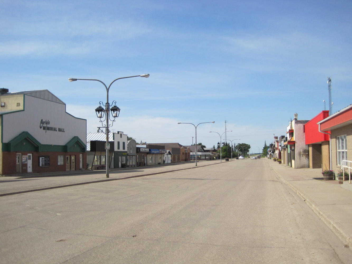 After a few hours of this, Dodie was just done. We had had ambitions of going 114 km to the first town in Manitoba, but ended in a desperate struggle just to do 63 km to Redvers, Saskatchewan. Dodie actually collapsed within sight of the town, and took ten long minutes lying in the tall grass to gather the strength to crawl into the town proper.