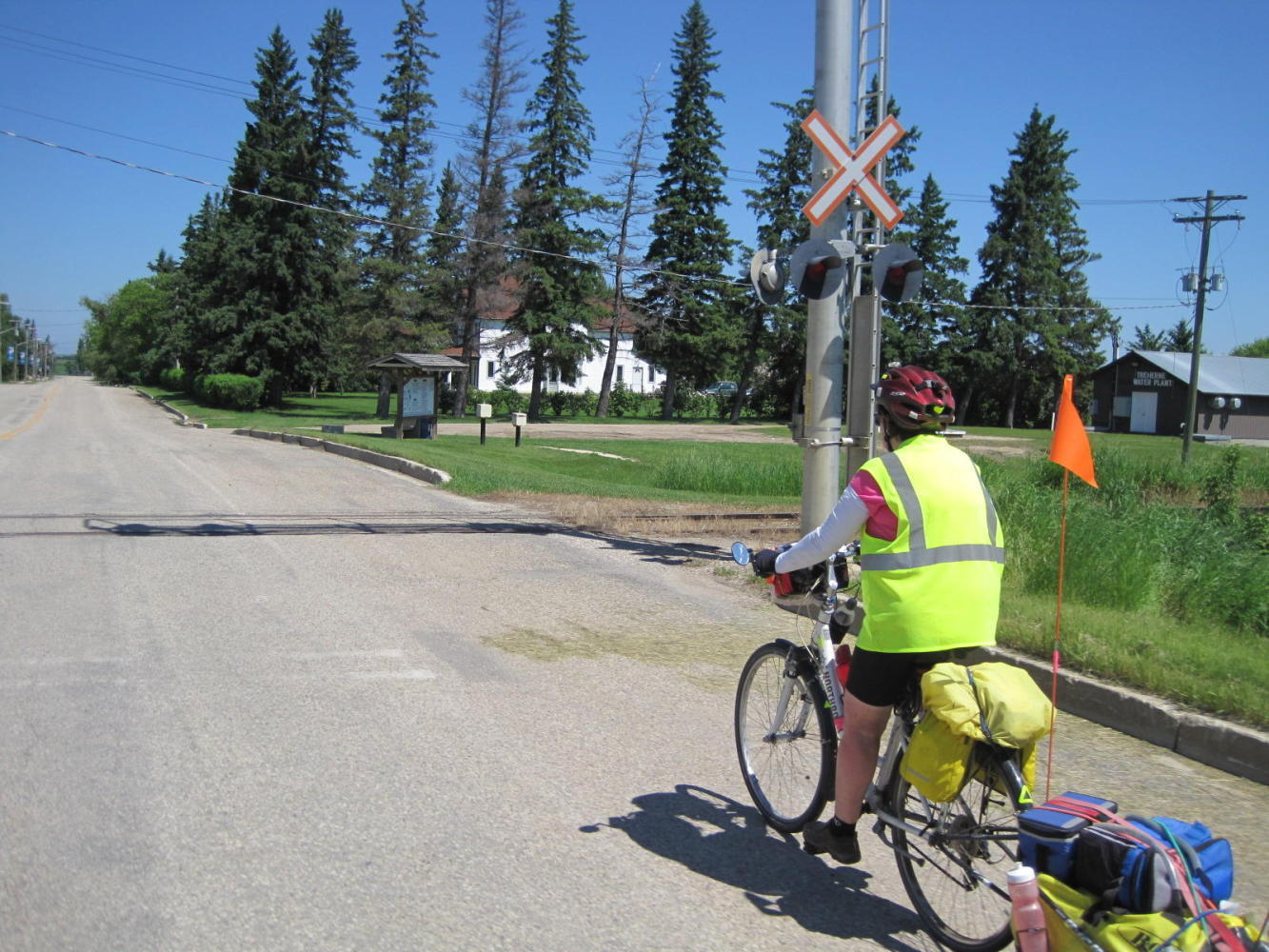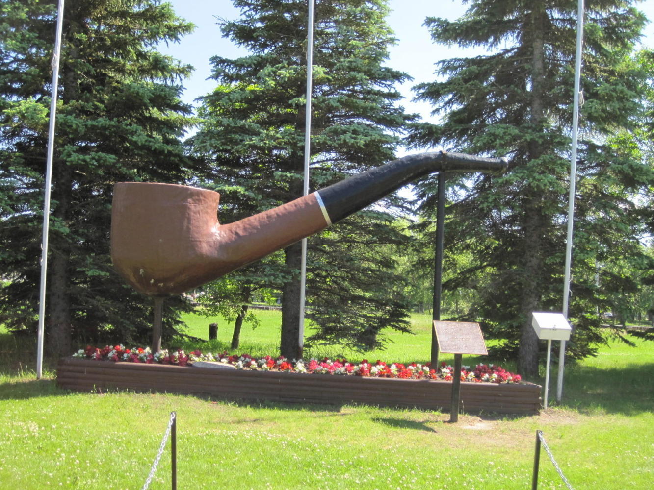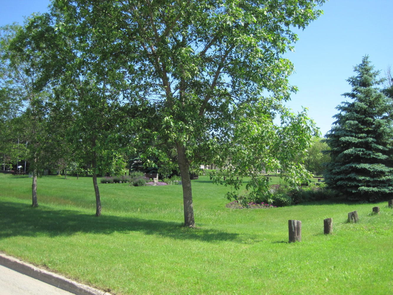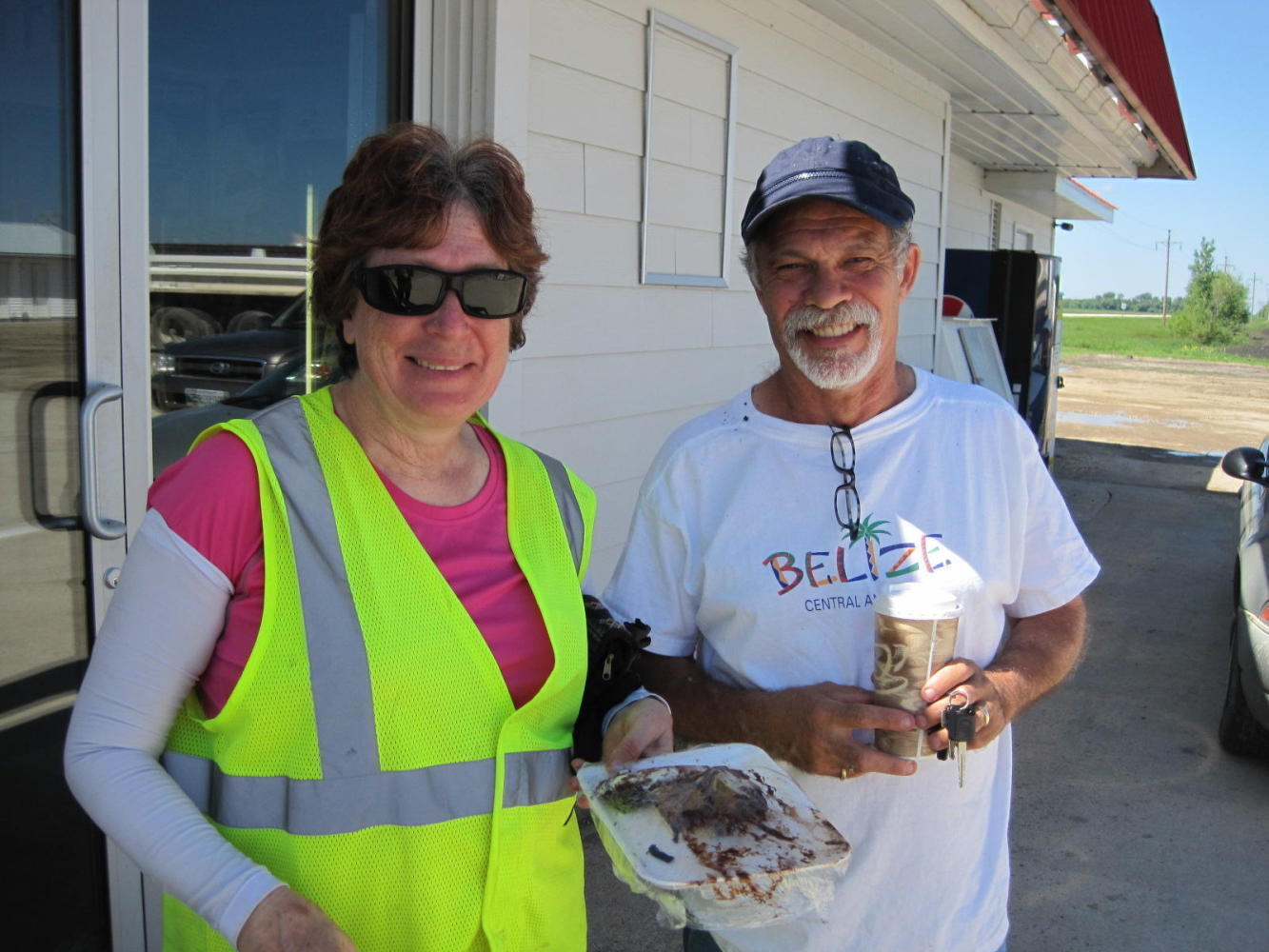 Mayor Norm Carter of St. Claude, Manitoba. (Joni - note the t-shirt). We seem to attract mayors off the street. We talked about the ralaxing nature of small town life, the flooding and seeding situation in surrounding areas, the condition of the road, and the encouraging fact that Norm - an anglophone - was elected in mostly French speaking St. Claude. Norm then invited us to city hall where we received two city pins and got to see the gardens, of which they are very proud.