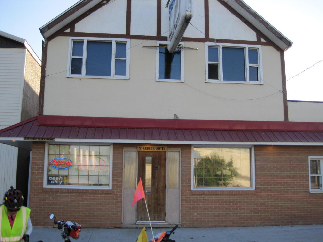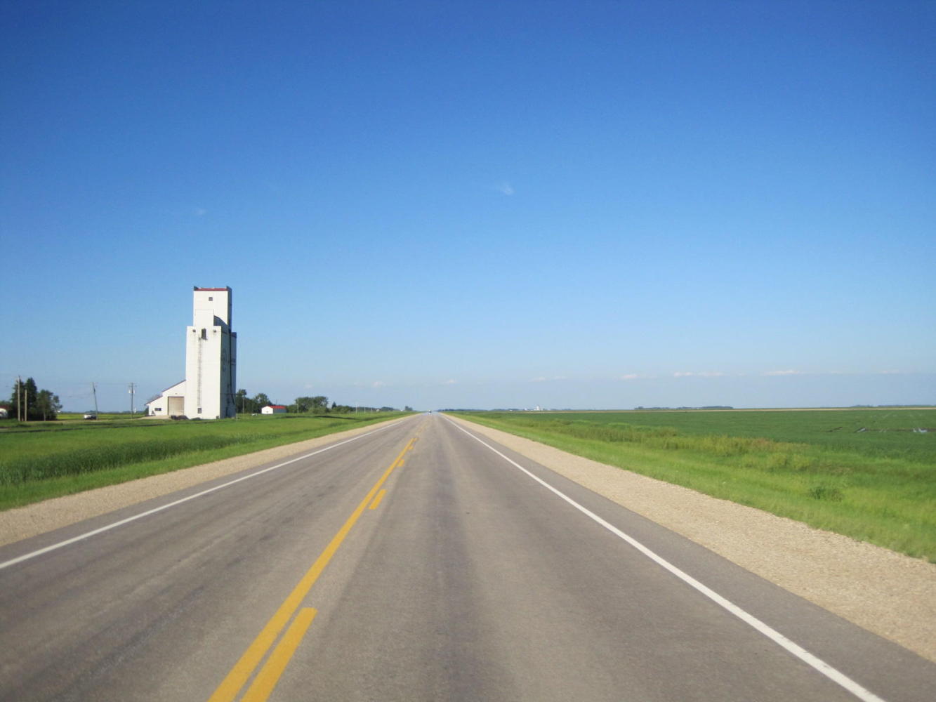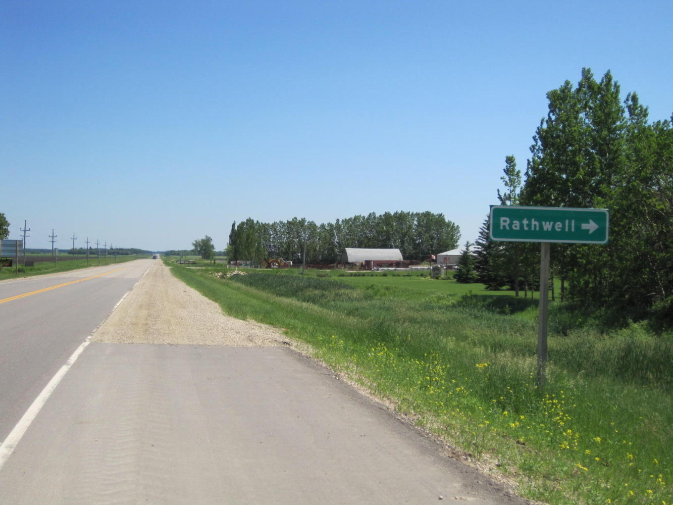 Starbuck is close to Winnipeg but lacks even the services of farther out small towns. Maybe it's the very proximity that is the problem. This "hotel" is really only a bar only now and is more run down than it looks here. We had thought of stopping at Starbuck, but we are focussed on making Winnipeg now, no matter what.