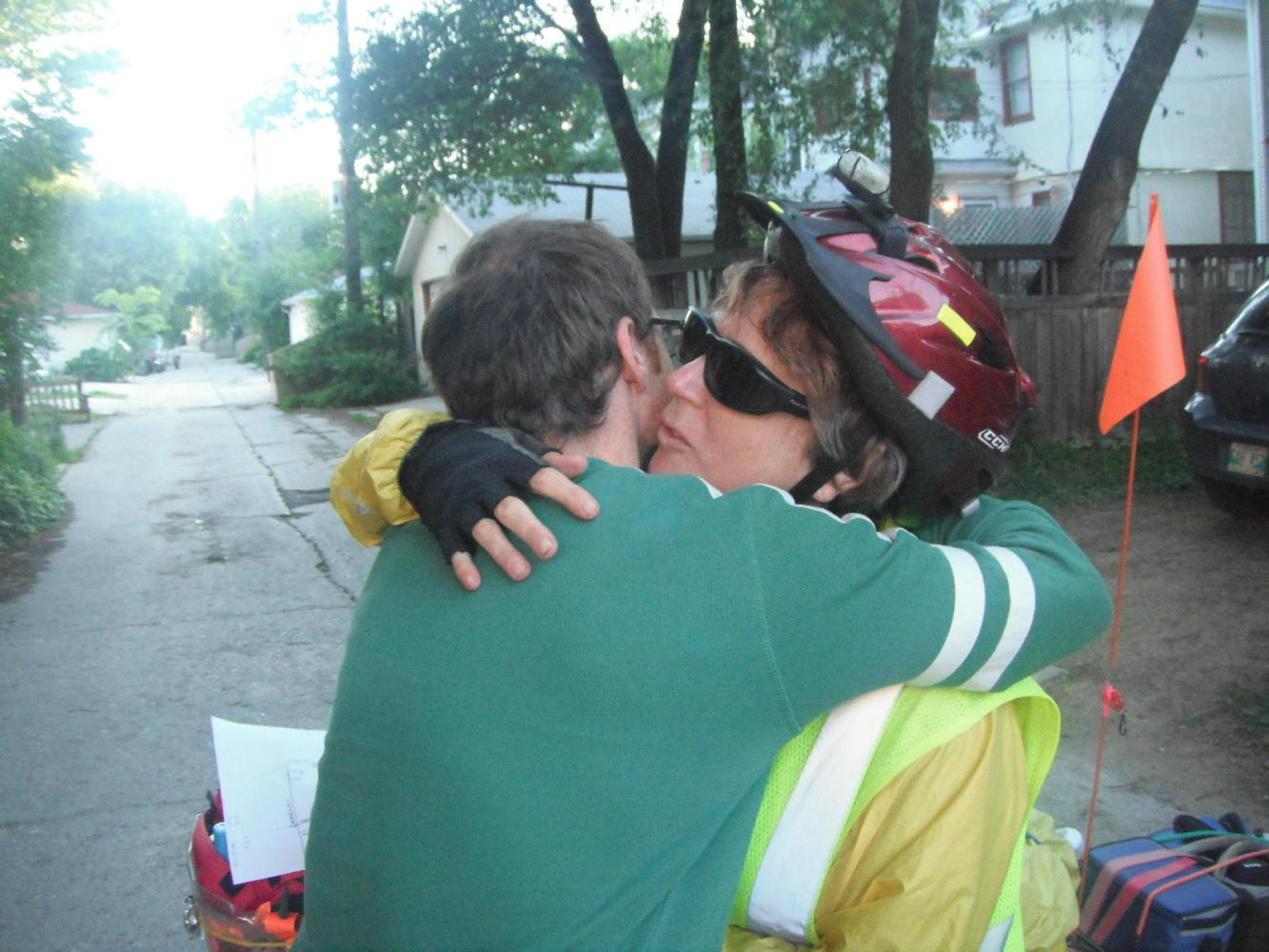 We said another fond farewell to Mark. He had made our stay in Winnipeg a really fun time! Mark sent us off with a carefully drawn map of the best way to leave the city. Right out of his alley we turned the wrong way, and Mark had to trot out to the street and point us the right way. Even if charged by Laurie with our care and feeding, just how far does he need to jog to make sure we reach Minnesota??