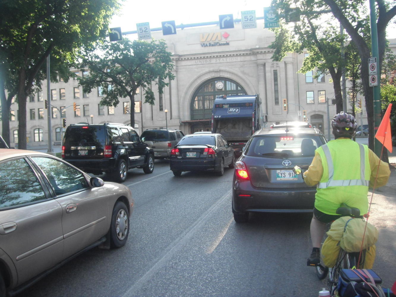 The city streets did contain traffic that we are not used to. Winnipeg is strange in that there are quite a few intrepid cyclists but almost no provision of bike paths or lanes. All you can really find is a few signs that say 'bike route'. All these really mean is that you are invited to take your life in your hands on this street rather than on some unsigned street.