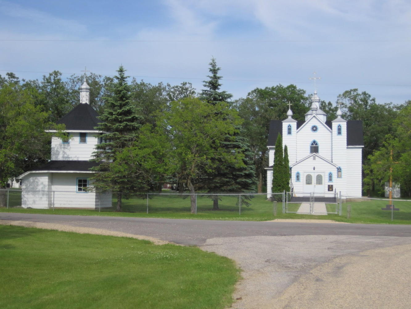 The headwind was very wearing, but we pedalled on looking for the perfect stopping spot. One candidate was the dot on the map called Rosa. There we found a Ukrainian centre and church that looked like good prospects. But finally at Roseau River there was a park with a covered shelter, washrooms with shower, and no one else around. The shelter was large, so our covered tent site benefits from five covered picnic tables! We are about 20 km from the US border here, so tomorrow we will of course cross over. We sure hope the Minnesotans were smarter than the Manitobans, and paved their darn shoulders!