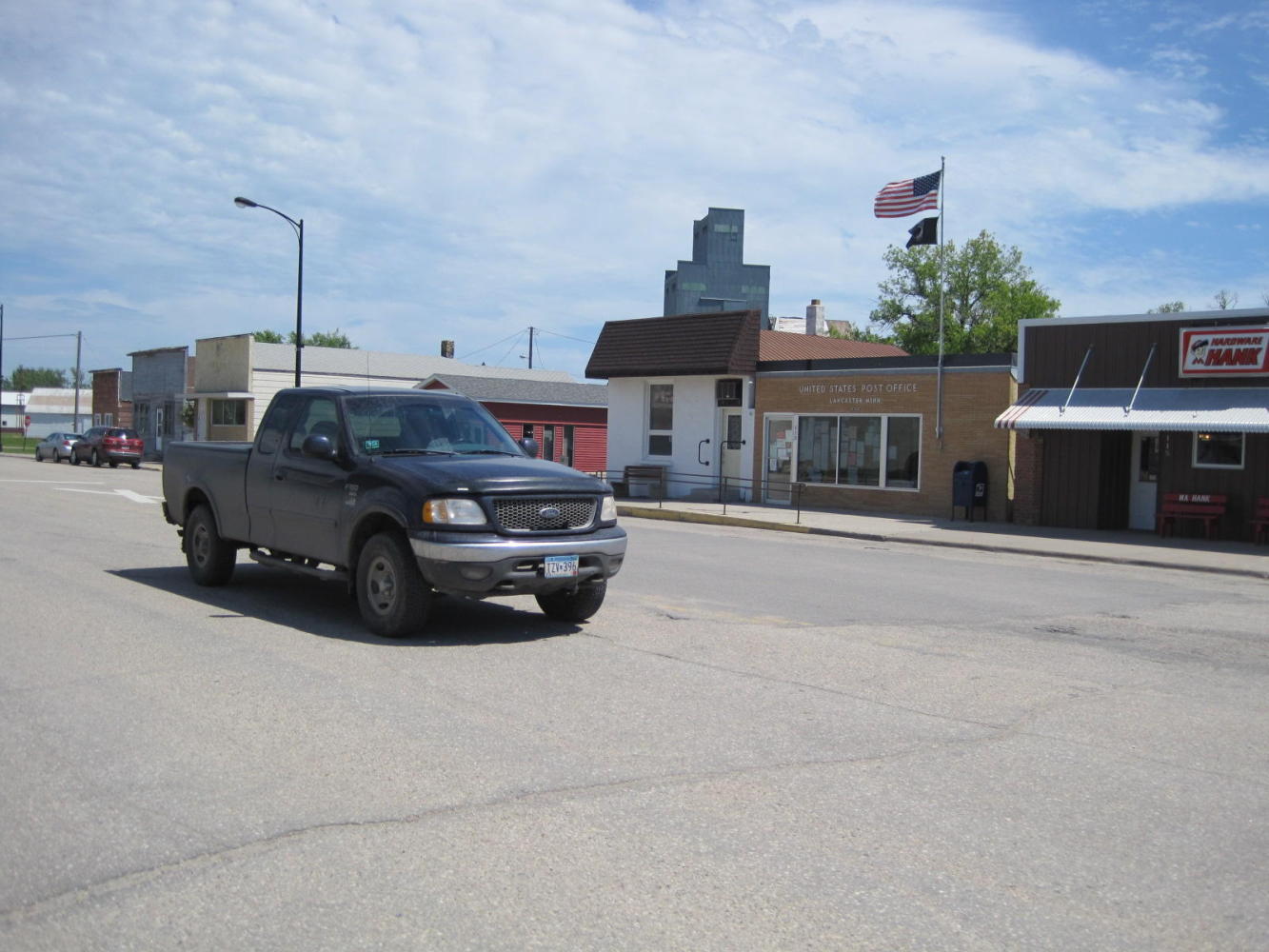 Waiting for strength to return to challenge the headwind again, we did a circuit around Lancaster. Like every other town, it had only a few buildings in its downtown, but among them was a good grocery. We stocked up with outdated yogurt and a small and fairly nasty sub sandwich. Also in the mix, a quite large 5 oz bag of M&Ms. When we have trail mix I always go for the one with lots of M&Ms. So a bag of pure M&Ms should be even better, right? Wrong. As in everything else in life, you need some salty to appreciate the sweet. Still, I am sitting here right now dutifully making myself sick with pure M&Ms.