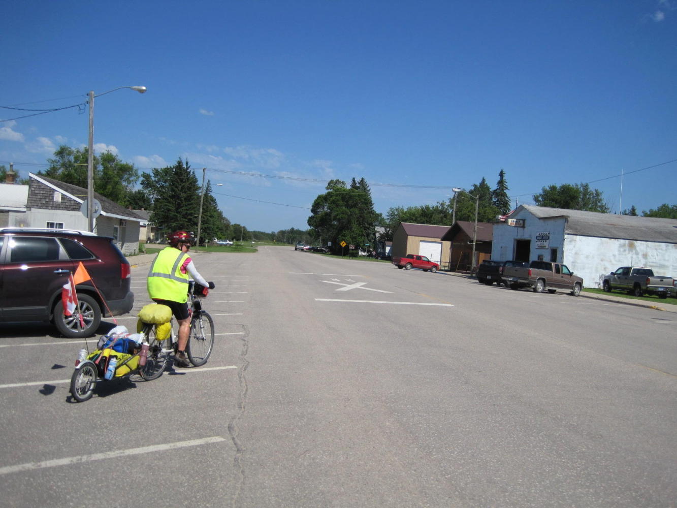 Significantly, we had seen no food since St. Pierre, and we set off into another stiff headwind having had a small supper and on;y a small breakfast. Rosa and Roseau River had been virtual ghost towns, where we saw not a soul outside of cars passing through. Tolstoi did have one person, which is a major increase (in percentage terms). The few houses at Tolstoi were surprisingly small. Heating costs would create a tendency toward smaller houses, but these were really small.