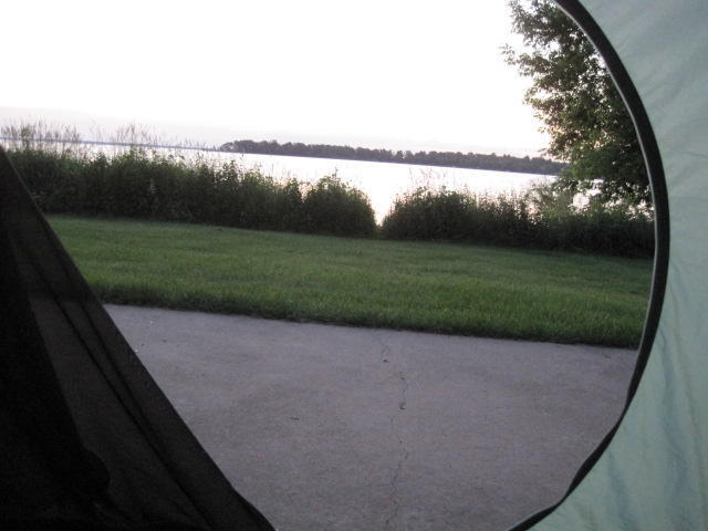 4:30 a.m. came and us sleepyheads decided to hit the snooze button, 'tll 5. By then the sun was already rocketing up into the sky. We plugged our netbook into the locked down washroom/tourist information building and recovered the power we had squandered on Big Bang Theory the night before.