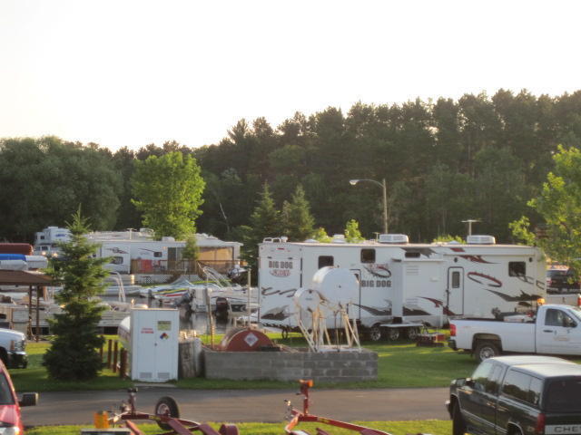 We reluctantly left our private lakeside preserve, but were glad to get back on the wide shoulder of our favourite, Highway 2. Just down the road was the Stony Point resort, which had been recommended to us as a camping spot. Wow, wall to wall RVs, just like at Bagley. We were much happier at our closed rest area!