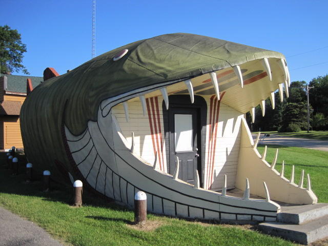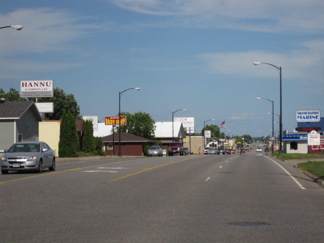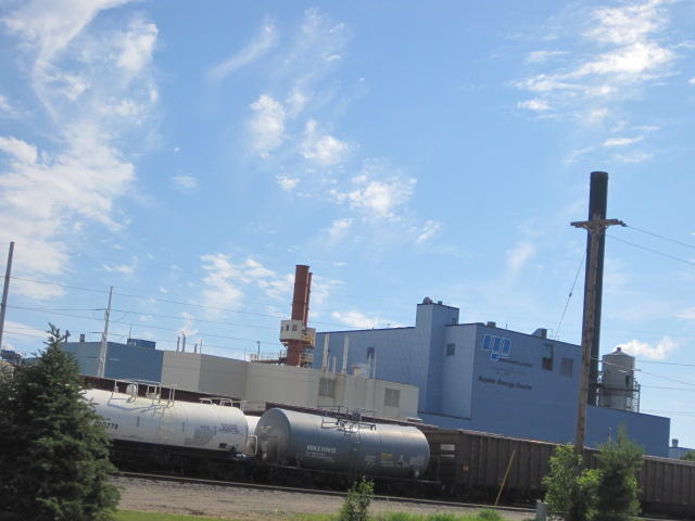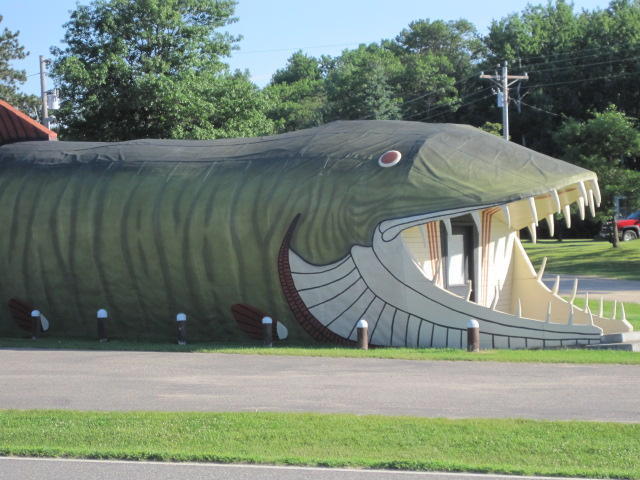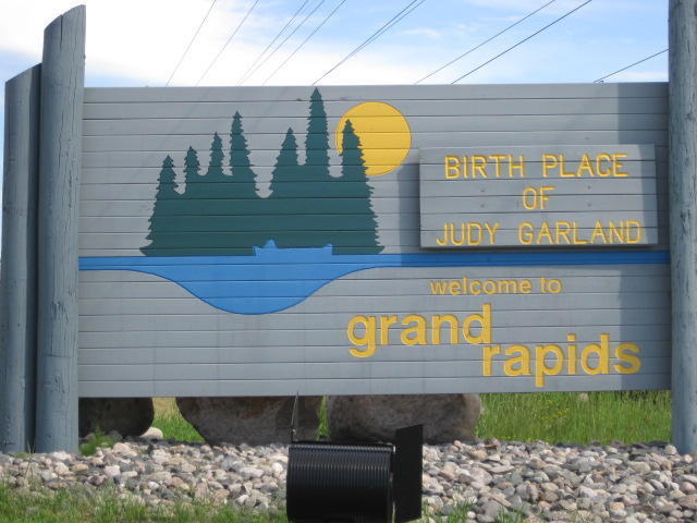 Grand Rapids does not seem to have an historic downtown. This is kind of a giant strip mall of a town, with businesses strung along a few miles of the highway. The strip mall also features an enormous paper plant and associated wood waste power plant. We followed some directions and made our way through a nice neighbourhood by a lake to the fairgrounds. Unfortunately the grounds were closed, fenced and barricaded in a way that would make it too much work for us to penetrate the defences. We went back to the highway and decided that we were not going to find a campground or RV park anywhere close, so we ducked into a decent but second class motel. Actually it features shade and cool and a shower, and does not smell weird, so it is most welcome. Outside, we can not unload the bikes in our bare feet because the pavement is too hot. How quickly we have gone from freezing in the rain to frying in the sun!