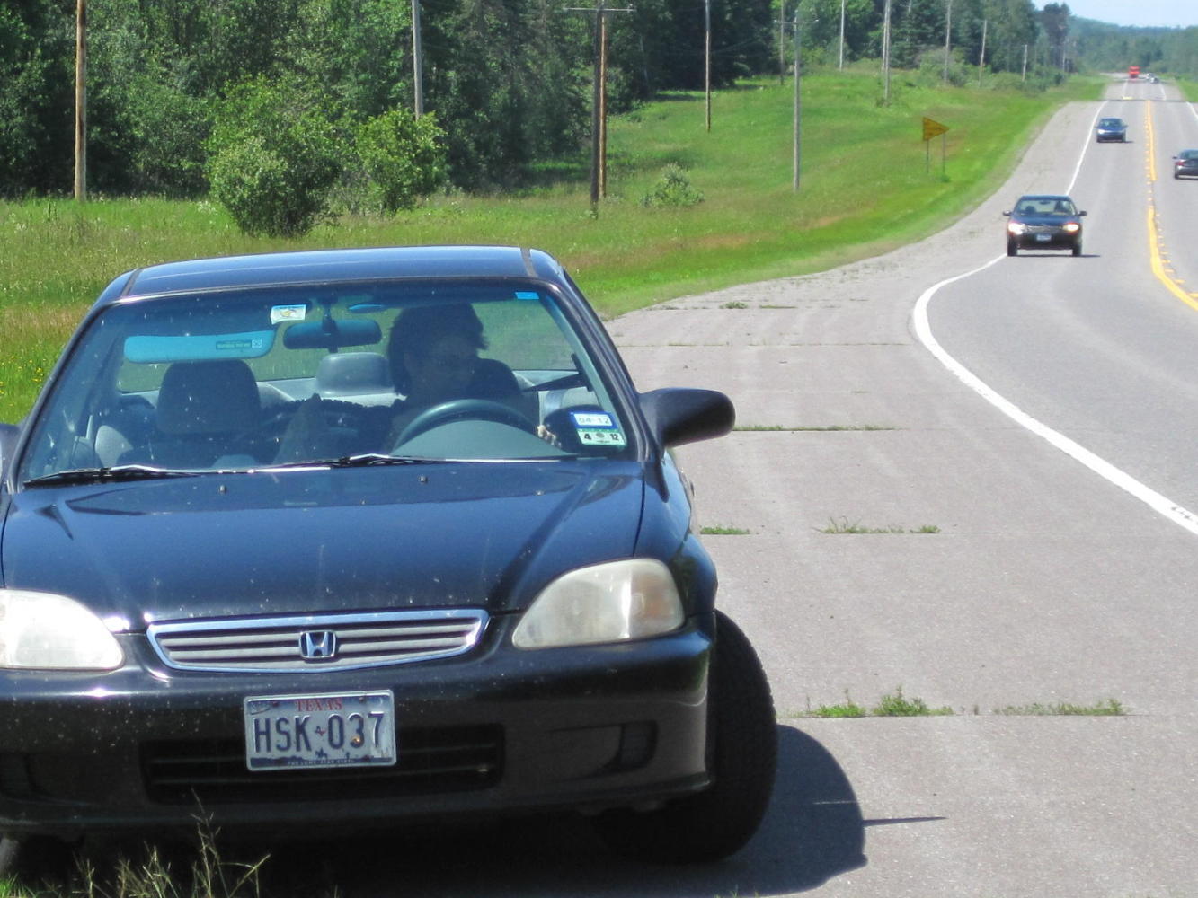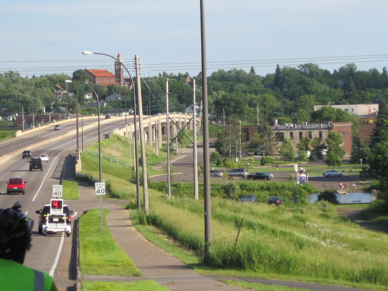 We stopped in to a bar/gas station (this is not Canada) along the highway for some time in the shade, and of course answered UQs for all the found-ins, which was the young bar keeper, a young couple, and an old man. The young couple advised us on the best way in to Duluth with our objective of the zoo in mind. This involved leaving trusty highway 2, but we took them up on it.