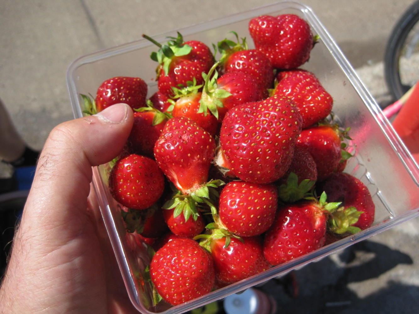 We came to a lady selling strawberries off the back of a van. Real strawberries! Picked this morning! A big basket lasted a short time.