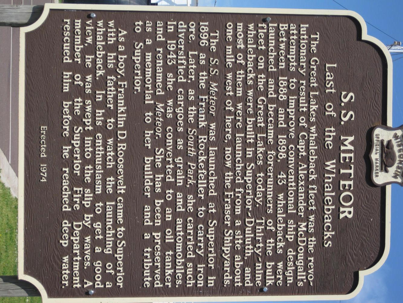 Art and Tim recommended that we check out the Meteor, which is not a celestial body but a ship on display down the road. We first found the Bong Veterans' Memorial Center. Bong was a WWII ace. Hence the sort of funny name for the bridge of terror.