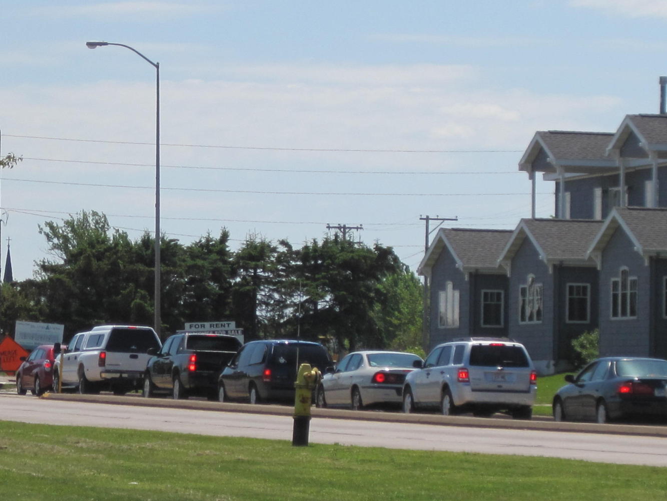 The first challenge of our day was to get out of Duluth. But before that, finding some coffee would be a good idea. We slowed opposite a free standing espresso shop, just sort of thinking about it. That was enough for a fellow to materialize out of the pavement and holler 'Canada!'. He came over and we learned that he was from Texas. He had been laid off as a drywaller and came up here to stay with his brother. He repeated what did not seem to be his own analysis of his layoff but rather was what they told him: The Obama health care bill had shut down hospital construction, which is what he was mainly drywalling. What nonsense.