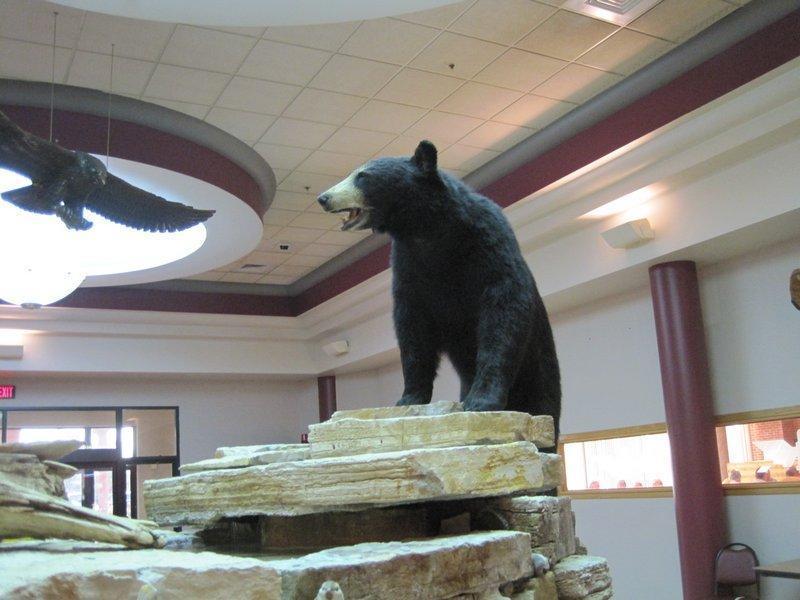 WINNER! ...well sort of. We chose something that looked like a slot machine, but it turned out the handle had no apparent function. Still, it took my dollar and there was a "spin" button to push. We pushed and stuff happened, but we are not sure what. We pressed "bet" and "spin" and more stuff happened. We seemed to have credits that went up and down. It was pretty boring, so finally I pressed a button marked "pay" and four quarters came out. Wow, what a complicated way to make change for a dollar! How about that? Four, yes four quarters back for my dollar. These Chippewas are almost in competition with Santa Claus!