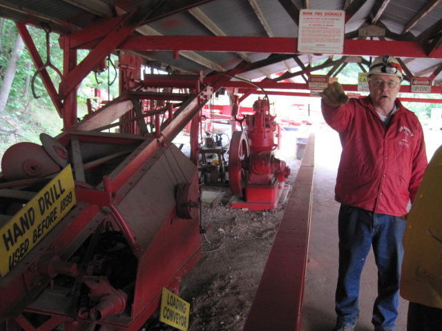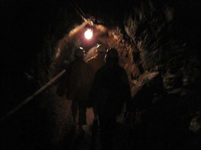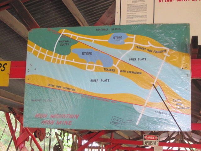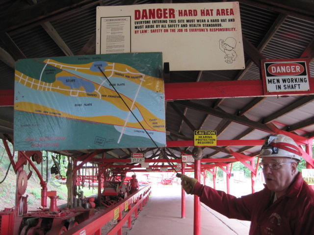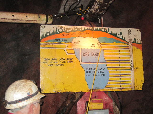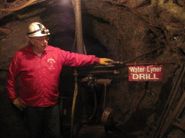 Speaking of worthwhile, the mine tour blew us away! This was no plasticized tourist ripoff. This was a real chance to go down into the real thing. While the guide, Leo, had never actually worked in a mine, he has being doing this tour for 17 years and had a wealth of information about iron mining and this mine. The tour began an explanation and brief demo of some of the mining equipment and then with riding a shaft train 2600 feet through a narrow, wet, cold tunnel. From there it was walking to two stopes, which are chambers from which ore was extracted. The second, larger stope, was a huge chamber partially filled now to a depth of 1200 feet with water. Leo explained much about where the ore was and was not, about air quality, about miners' diseases and hazards, wage rates for various job descriptions, etc. Needless to say we learned a lot. We were also amazed that regulators had not ruined this with a lot of controls like safety gates on the train, better barriers at the stopes, less slippy floors, etc. As it was, it felt authentic. They also had free coffee and cookies!!