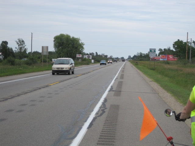 As we were leaving, a quiet young man sitting alone at a table asked me if we had a place to stay. I was afraid he was about to offer us a place, since we were already talked out. Not in the least. This turned out to be Tim, a long distance cyclist doing the circle of Lake Michigan, and whose bike was parked outside.