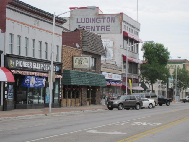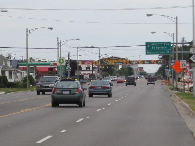 Traffic picked up as we near Escanaba, making us less disposed to like the place. As we got nearer, the nondescript roadside resolved into miscellaneous nondescript businesses. Finally, the 'downtown' did the same, only with a little more density.