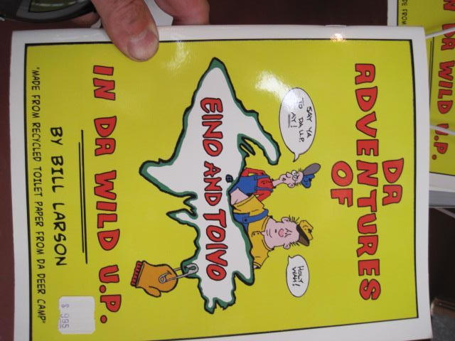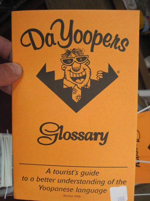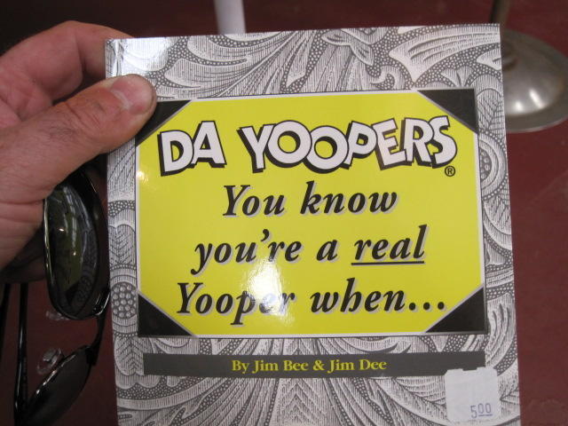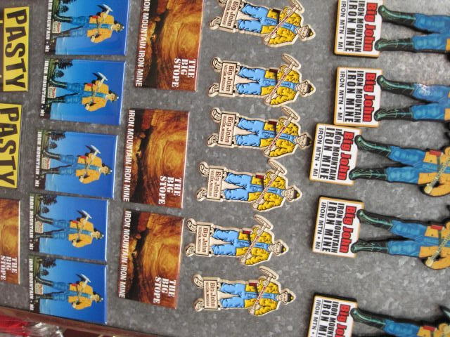 At the appointed hour (9 o'clock) we reported to the mine and found that its main building was a surprisingly large and well appointed gift shop. Items for sale included a lot of minerals both local and not, videos about trains from around the country, and one category of particular interest that I will call Yooper Ware. The first reference to 'Yoopers' that I saw was yesterday in the pasty shop. I didn't mention it here because I suspected it was an affectation of that shop. Now I see that Yooper stuff is everywhere. Yooper of course is derived from the U.P. or Upper Peninsula of Michigan, which is where we are. The Yooper mystique is almost identical to that of Newfies or Hill Billies, except that it includes lots of references to mosquitoes and snowmobiles, pastys, the U.P., and Yoopers: all stuff we knew nothing of before this cycle trip. Kind of makes it all worthwhile, eh?