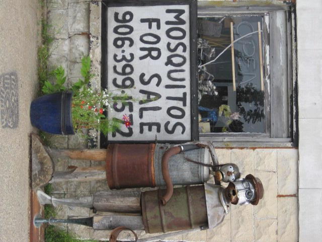 Yesterday I raised the question with Dodie as to what one would find in a European town that did not have too much. Could it be as depressing as Bark River or would there be some twist to it? Today we are sitting at the St. Jacques grocery. In the display case there is not much, but what there is is smoked whitefish and pasties. We are cool with that!