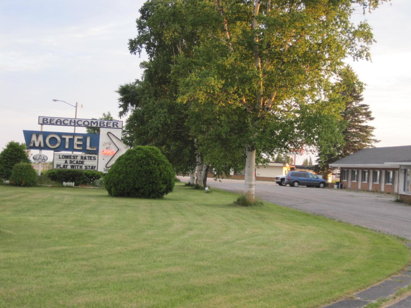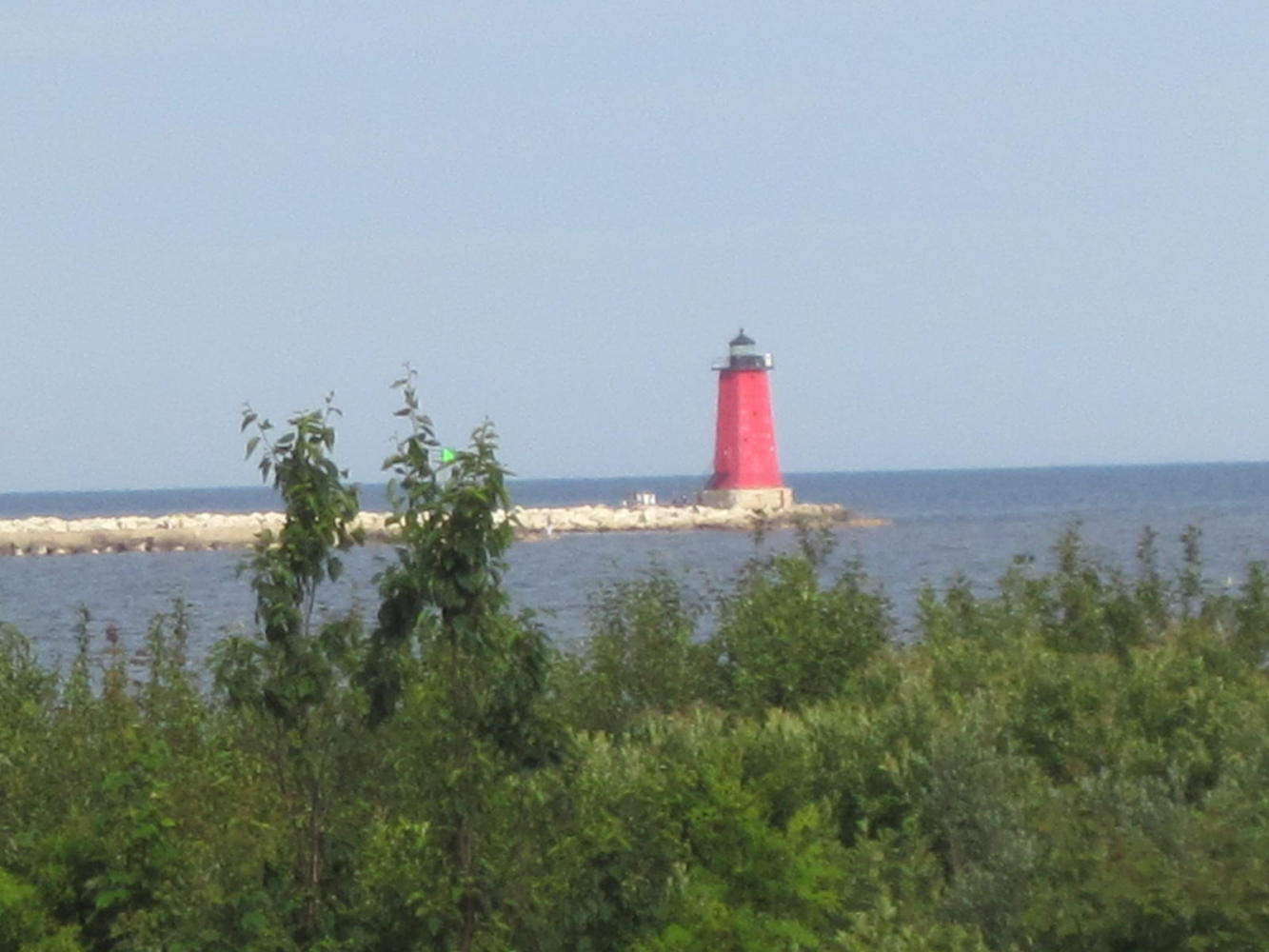 Reaching this area, just before Manistique, finally gives the full impact of being at the Lake. We followed a sign for the 'business district' of Manistique and wound up in an industrial area. Only after some winding around did we feel we found the real town. We found a very good restaurant there, the Cedar Street Café. Returning to the lake shore we found a 1 mile boardwalk, plus a string of motels. Any camping spots seemed far off, so we jumped into a motel without the excuse of rain or fatigue. At $45 it will not break the bank. Wifi here allowed Skyping, first with Avi and Violet and then with Jeremy.