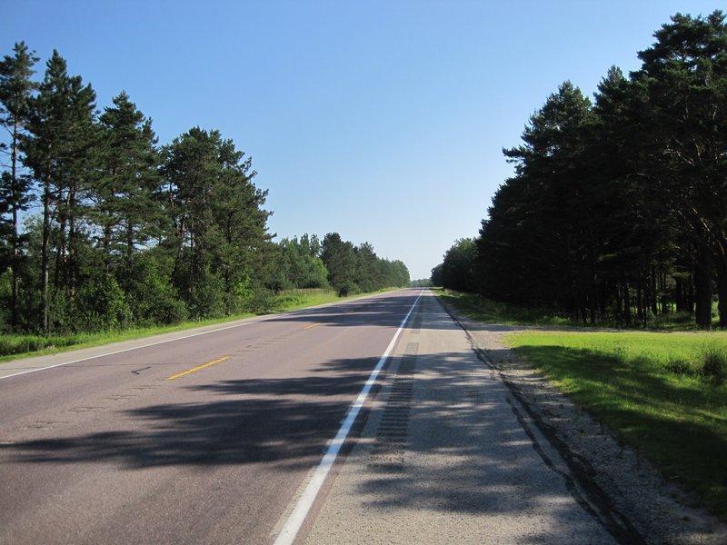 Blue skies, flat road, wide shoulder - deadly. How can we boost our hit count with a dull situation like that? I took a photo of the road, just to test the premise that this could be in any one of a dozen states or any of the provinces.