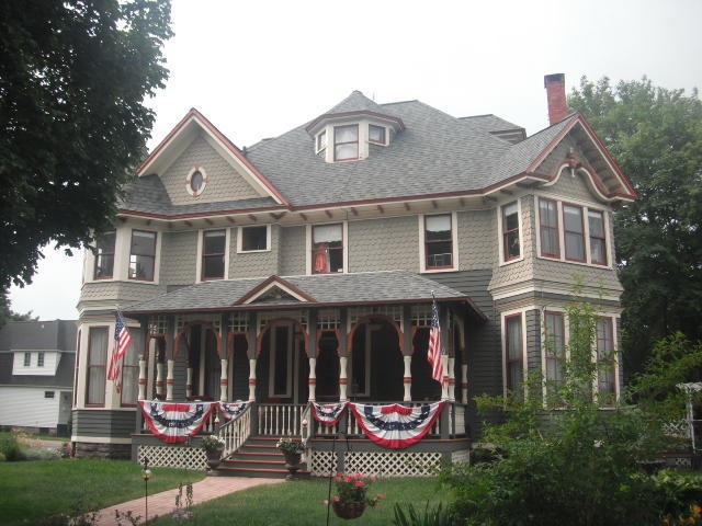 Today we had declared a rest day, to recover from yesterday's heat and prepare for tomorrow's challenges (the scary bridge and scary Canadian wilderness). We cycled into town, past pretty but often run down houses, just crying out to be bought cheap and renovated.