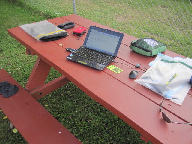 OK, so it's later, and the Canadian wilderness did not turn out to be so bad. First up, there was a strategically placed gas station about 40 km out from Sault. The place featured gourmet ice cream bars, so there was little suffering there. We did do some grousing to the owner about how despite the moose warning sign there were no moose. He explained that the moose appear when driven out of the bush by the mosquitoes and black flies. So the fact that we have not seen them is good news.