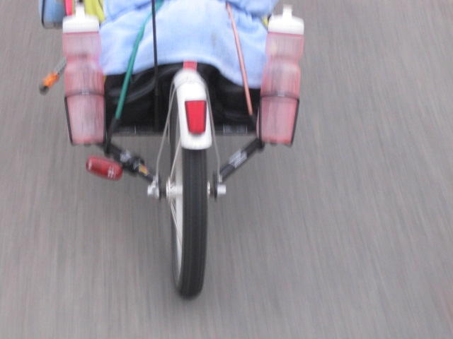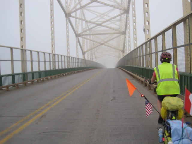 On the bridge I tried my best to just follow Dodie's trailer wheel and not look over the side. This thing is narrow - no shoulder - so we took the whole of the single lane. Fortunately, only one truck passed us for the whole 5 Km ordeal.