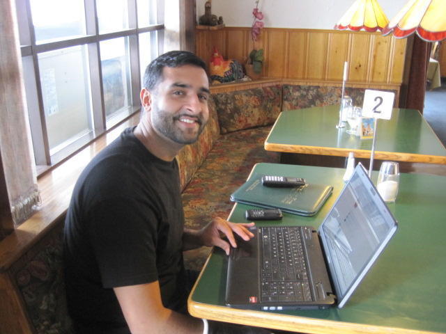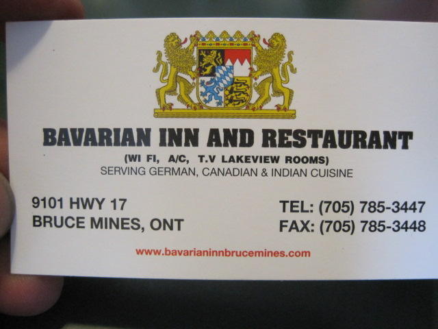 The next surprise was the Bavarian Inn and Restaurant in Bruce Mines. When we walked in we were greeted by Sukh, the owner's son. Sukh seems about the age of our own kids and was sitting with his laptop, all factors that make us feel at home. It turns out that Sukh's family bought the business two years ago from Gunther, but have maintained the Bavarian theme and menu items while adding some Indian dishes. They also have both original and new cooks.
