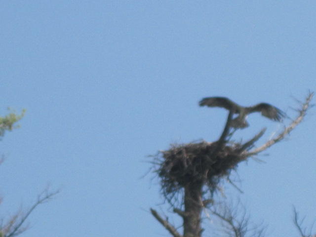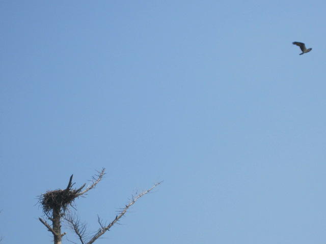 Dodie spotted a large nest in a tree with apparently a fledgling hawk, doing a lot of peeping. It stretched its wings and we decided it was going to try a maiden flight. In fact it did and made it over to a nearby tree, from which it did more peeping. The drama was high, because it looked very tough for it to make it home. It launched and flew very well, around in a big circle and came in towards its nest. Too high! It had to go around again, too wide! On the fourth try it made it home, and we cycled on, quite pleased for it.