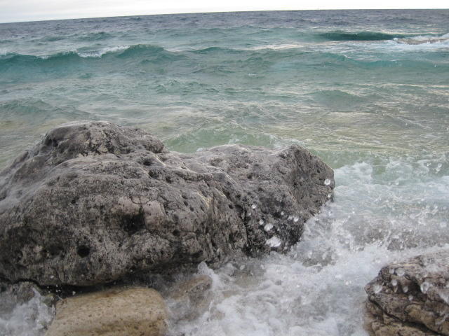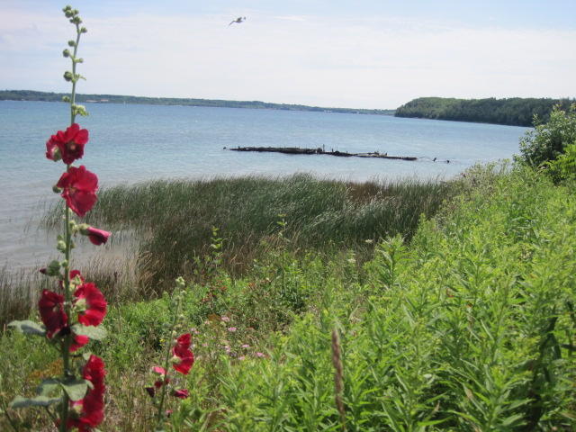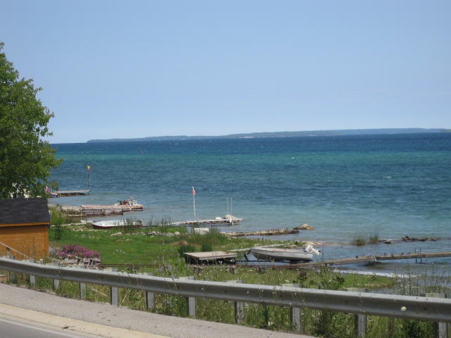 ... Well we did leave, and stayed off highway 6, taking the quieter highway 9. This was also hillier, but since the sun was not as strong this presented no problem. The road led us by Colpoys Bay, which can only be described as drop dead gorgeous. We are having a debate as to whether the water here is "Caribbean" blue. Dodie says not, but for sure it is turquoisey and nowhere near grey. Next time we are near Home Depot we will get out some paint chips and decide.