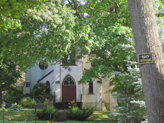 We used our cell phone to check with that Motel 400 and confirmed that their price truly is $130. After gnashing our remaining teeth and pulling our remaining hair, we did slowly drag ourselves off through the town and towards the far end. On the way we passed a church sporting a "No Trespassing" sign. This caused a lot of speculation as to whether any trespasses could be forgiven. We decided not, and carried on. However, the seed had been planted.