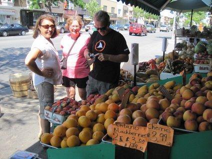On the way back we noted some additional bakeries - some Middle Eastern and one French. In the French one, the pastries cost over $6 each, but each was a work of art. However Dodie says she looks at art and eats food. We also checked out a fruit store. The Chinese proprietor showed flexibility by greeting two ladies entering with "salaam". I thought he might be talking to me, but of course that would have to be "shalom". Still, we got a basket of Ontario peaches and some great cherries of unknown origin. We could easily live on stuff like that over the next days here, but research is still needed to find a bakery that we can afford. That is the kind of research one could really get in to!