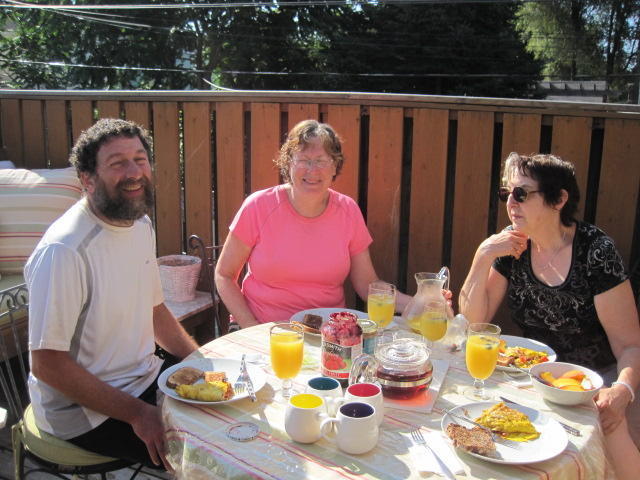 Our first step was breakfast with Rosie. With Ontario peaches, cherries, and blueberries plus left over souvlaki chicken from the night before, a breakfast was assembled that was far from the bacon and eggs specials we have been eating for the last three months.