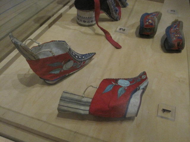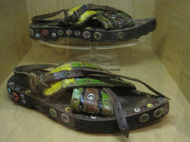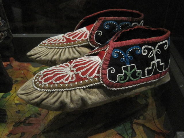 As we pass across the country, some blog readers get to vicariously revisit places they know. Laurie has posted a bunch of Toronto suggestions, and maybe on our last day we can hit some of them. One was the Bata shoe museum, and we can say "been there, done that"! The Bata museum shows no evidence of the Bata shoe company, except for their presence in the name. Rather this is a full on quality museum of shoes. It begins with displays of ancient shoes from various cultures and civilisations, and then has some specific presentations on the Roaring 20's and of First Nations footwear. It is highly interesting but also very didactic. There is no way to actually cover what we saw here, and there is no way in one walk through that we could absorb even a small part of what was presented. Anyway, here is the flavour: