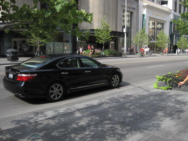 A cycle tour normally involves such "low life" activities as sleeping on the floor, eating junk food from service stations, washing clothes only infrequently, etc. At least that is the case in North America. Maybe you could have an elegant European tour? Anyway, the North American version fits our normal life style best. So imagine the more or less still grubby Grampies on Bloor Street, where they have the high end shops. See them gawking at the $2000 (or whatever) purses. They must be wondering if you could make panniers out of them! Here is some of our walk down Bloor: