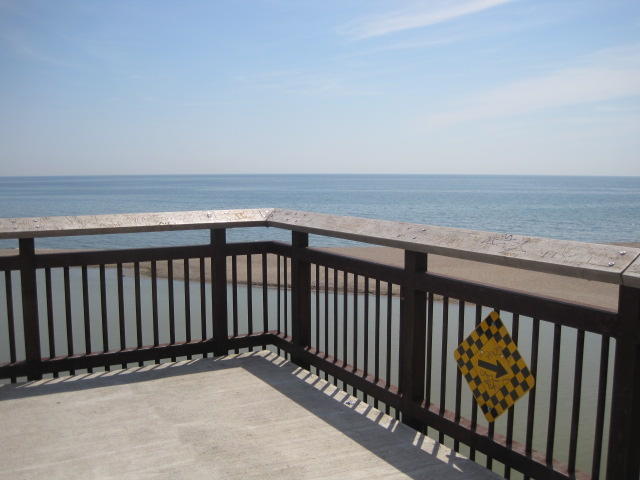 Following the cue sheet we made up for the lakeshore trail from brianhedley.com, we turn down onto Ravine Drive. After a bit we are making the final turn that will bring us, we think, to the lake shore and the trail. A man pulls up in a small SUV and calls out "you can't get through that way!" This turns out to be Ken Martin a firefighter that lives nearby and someone who has not only cycled across Canada but has also done the lake shore several times. Ken advises us on how best to do the route ahead, and leaves us with a map and good wishes.