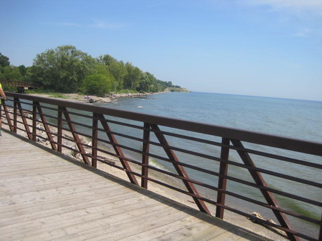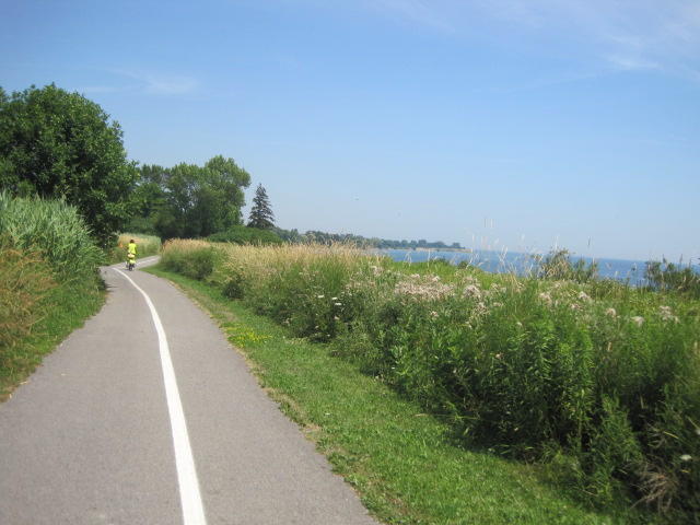 The Lakeshore Trail is a route cobbled together from existing paths and trails through parks and conservation areas along the shore. It features supposedly consistent signage and a yellow stripe dividing the paved path.