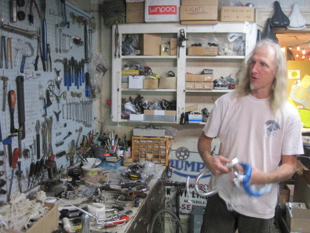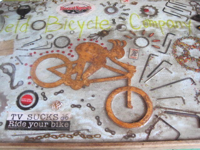 Everyone says a stop at the bike shop in Bloomfield (just down the road from Wellington) is a must, and this turned out to be true. Scattered around the complex site was a mixture of high end/rare items, normal stuff, artistic stuff, and weird stuff. What shone through it all was a clear love of cycle and cycling. It was a fun though brief visit, since we were eager to make it to the next campsite before it got too late.