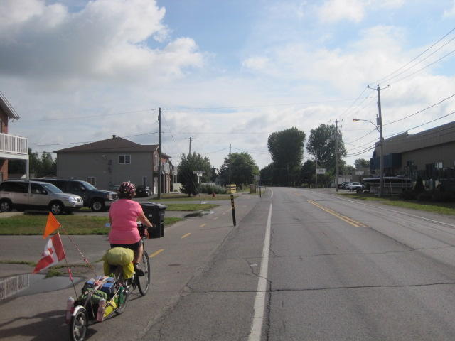 We had hopes that the Route Verte signage would be better done than what we had found for the Waterfront Trail, but actually it proved to be about on a par. That meant we could expect to get lost about a half dozen times per day and/or have to use our wits (that is, Dodie's wits, I actually have none to speak of).