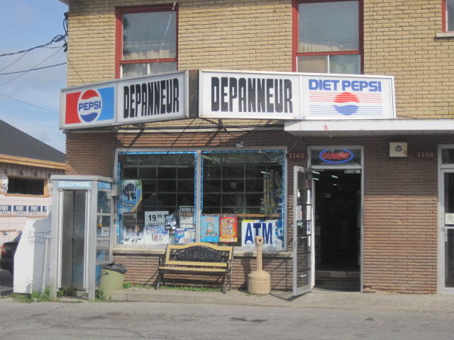 The surroundings were pretty nondescript. But it's not only drop dead gorgeous things that make up the interest in a trip.So here is a peek at what we actually saw. For those not familiar with Quebec, there are millions of convenience stores, called Depanneurs. Wikipedia says depanner means to help out of difficulty or "troubleshoot", but I always think of it as meaning "un-panick-er".