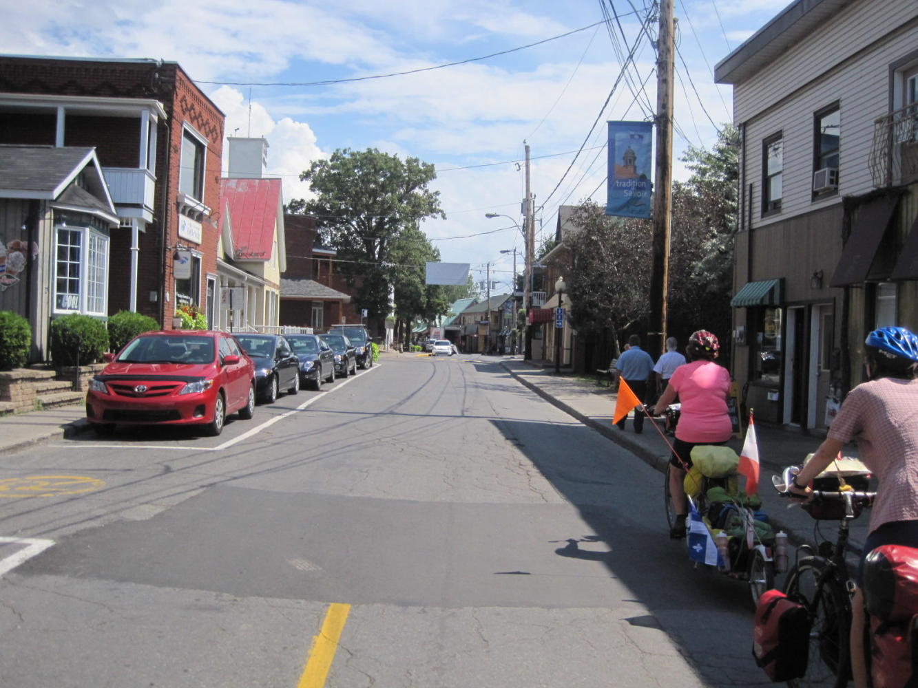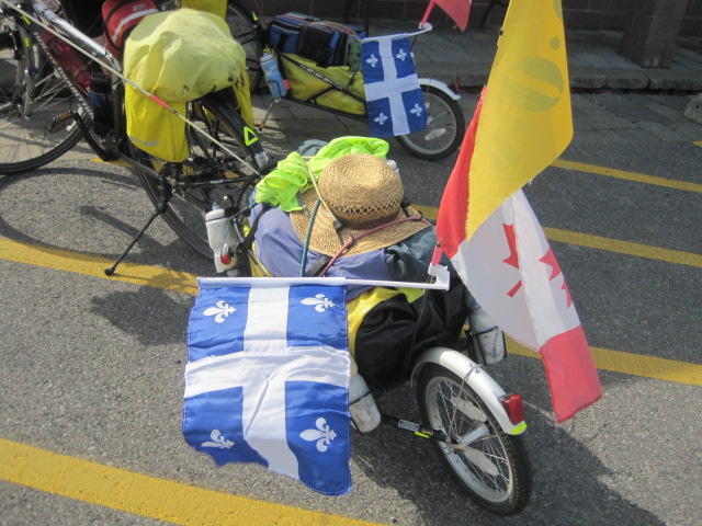 We tried several depanneurs looking for some Quebec flags - the Fleurs de Lis - to add to our BoBs. They all said that since it is far from St Jean Baptiste day they had no flags in stock. In Quebec, St Jean Baptiste day is the equivalent of Canada Day or July 4 in the U.S. We found this a good sign, because it meant the population was putting nationalism in its proper place - pulling out flags one day a year. When we first abandoned Quebec (in 1970) they were not only pulling out flags on the wrong days but putting bombs in mail boxes and kidnapping diplomats.