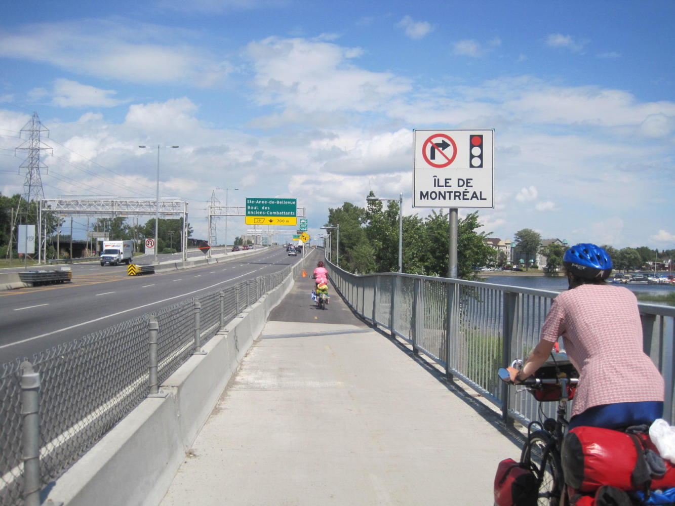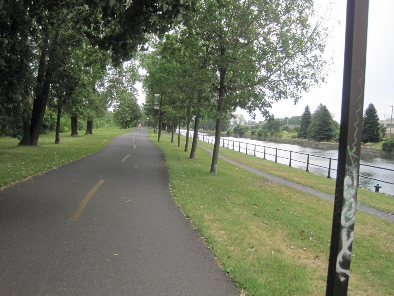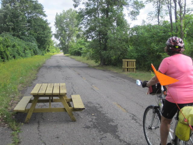 The route verte now followed the Soulanges canal. This, plus the Lachine Canal later are terrific greenways. They are like rail trails - they use an abandoned transport corridor and open it to bicycles and walkers. We we also pleased to see that the Route Verte had installed picnic tables and garbage cans at lots or places along the path. It's a big big change from the Quebec we knew 30-40 years ago, when cars were king and bikes had no chance at all. If change like we have seen can happen here, it can happen anywhere. Do you hear that - Manitoba???