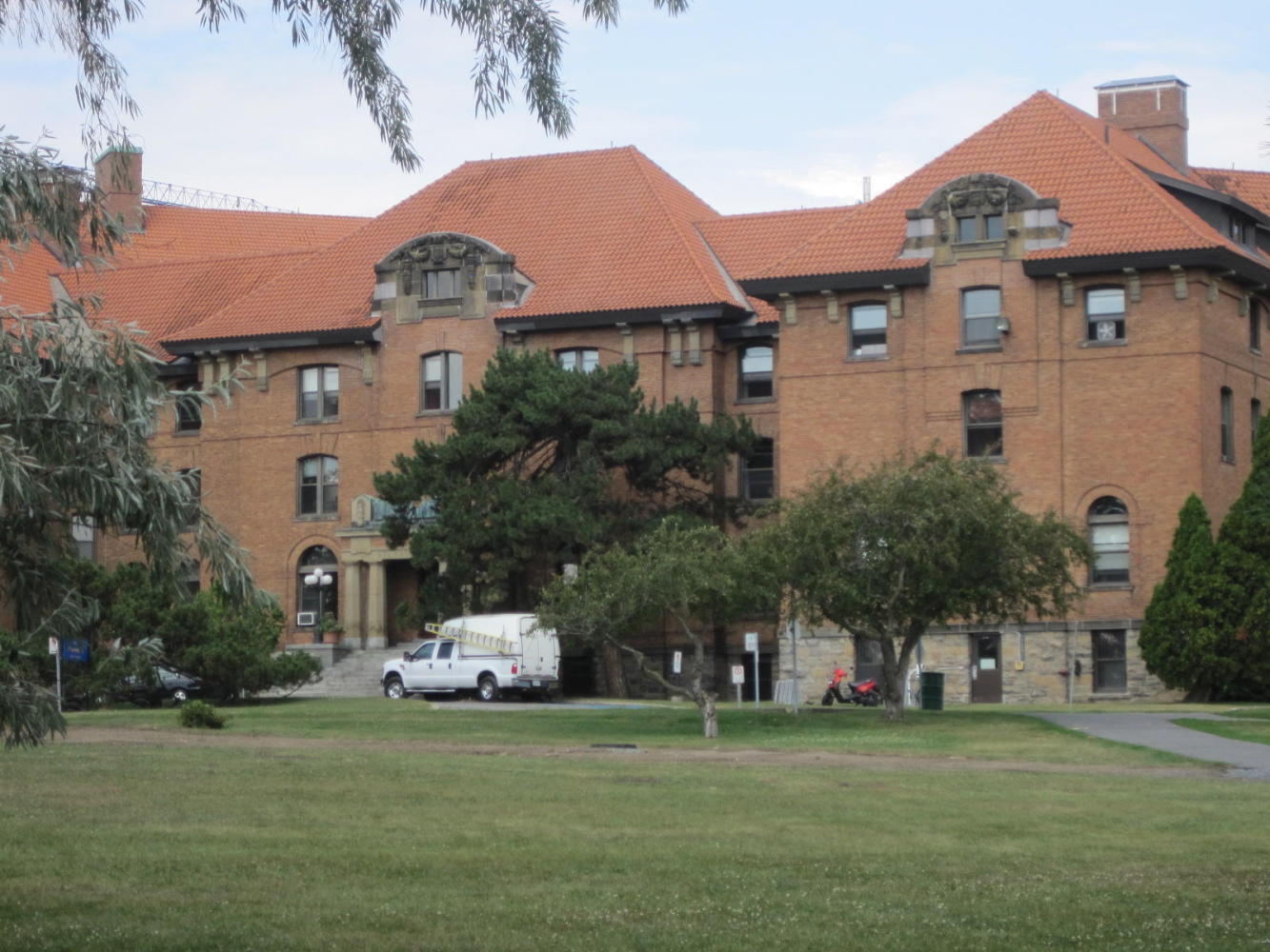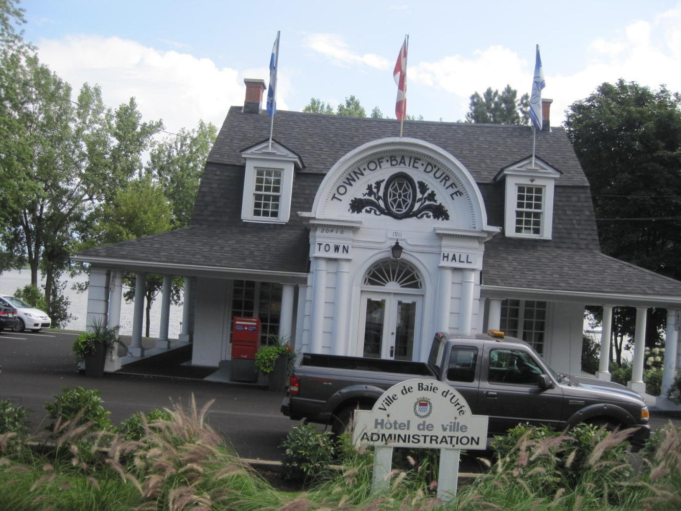 Dodie did a great job of finding our way onto the Island of Montreal proper an into the first town - Ste Anne de Bellevue. This is the site of McGill University's MacDonald College campus, and the place from which Dodie's mom graduated from teacher's college. We have some old family photos showing the graduation at exactly this place.