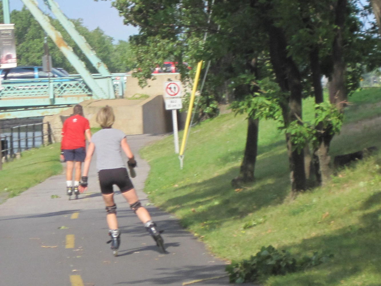 As with the Soulanges canal, the Lachine Canal forms a remarkable greenway though some of the grungiest, most freeway infested parts of Montreal. It;s a wonderful thing, and did not happen by accident. Banners along the way proclaim the project and its federal/provincial funding.