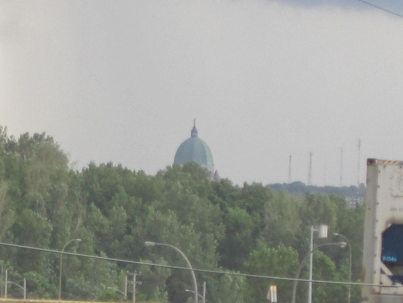 We were looking for a "Welcome to Montreal" sign that would be our photo op for completing this most major phase of the trip. We didn't spot that, but we did first spy St. Joseph's Oratory in the distance. This is one of the most iconic images of Montreal, and seeing it meant we really were there.